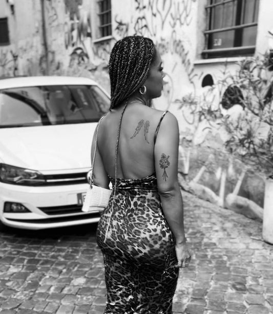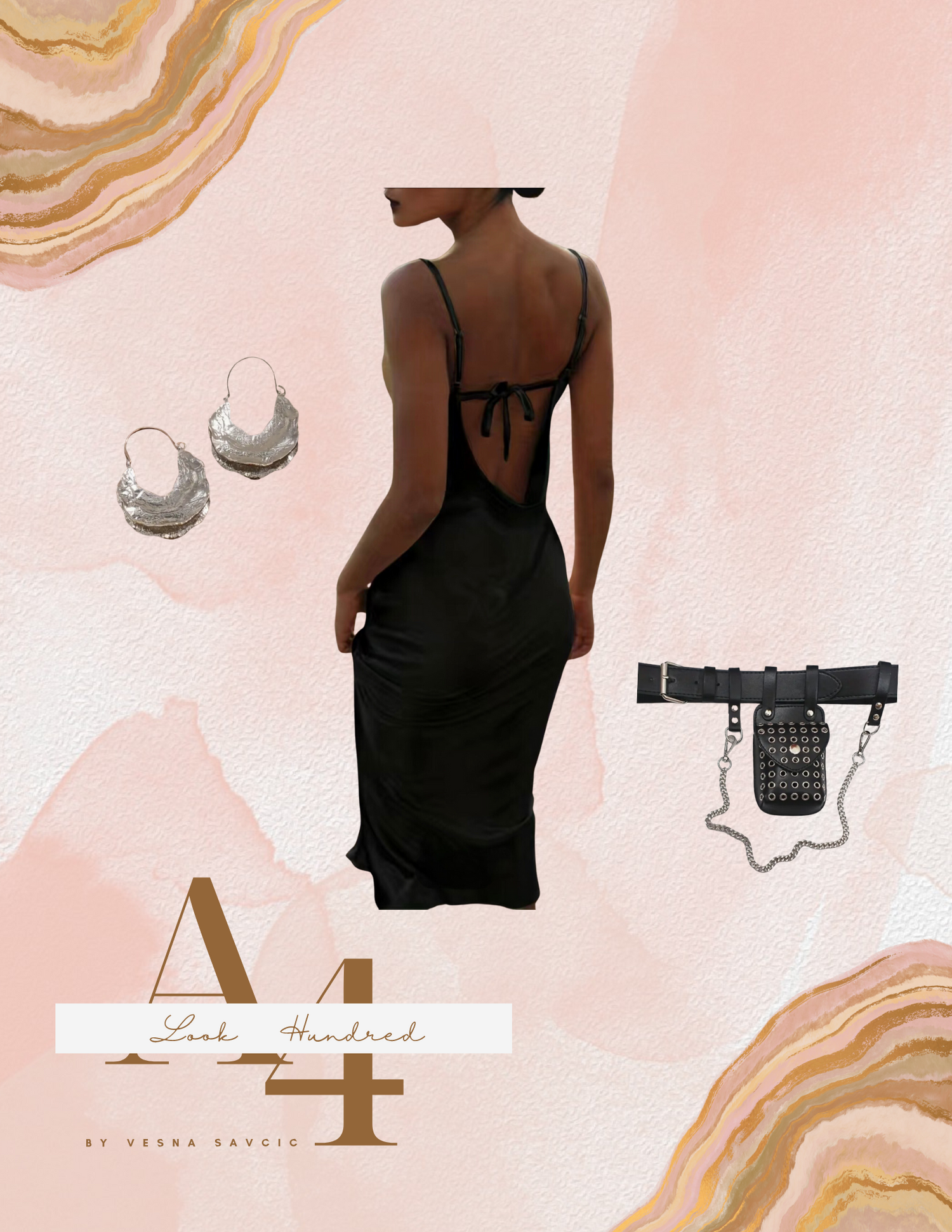 For today's look, I decided to pair this elegant maxi backless slip dress with a punk like belt bag to create a little bit of an edgier vibe. Added a pair of silver earrings to complete the outfit.