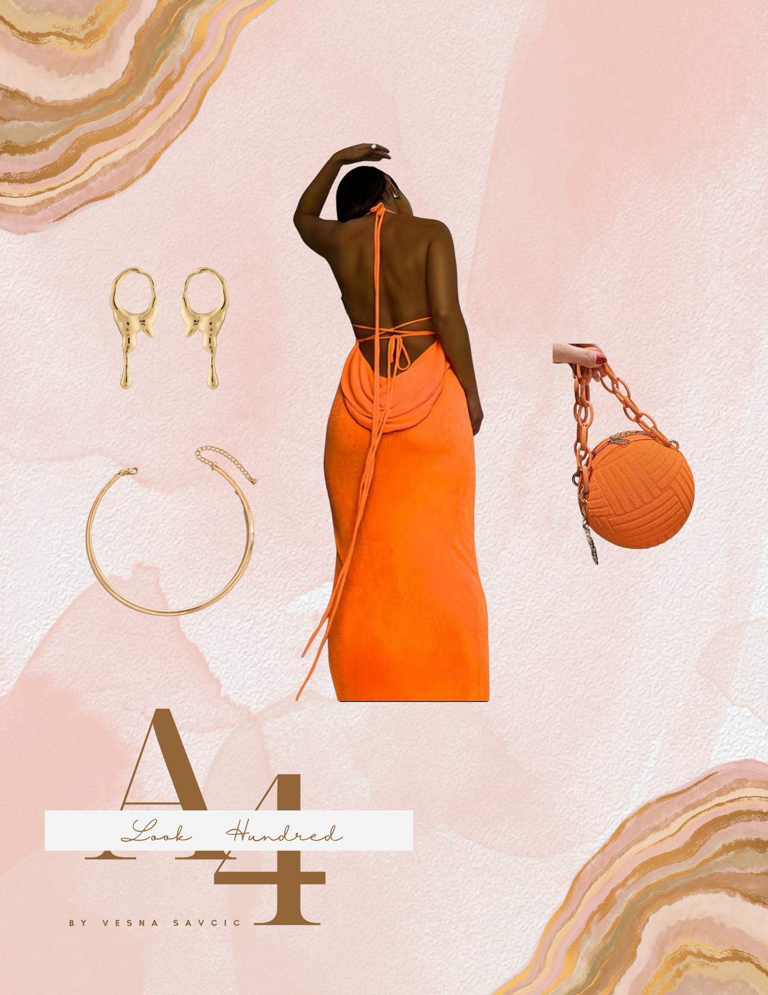 This time I decided to keep it monochromatic and pair this chic and sporty ball bag with a super sexy, matching orange dress. Added these abstract earrings and a simple gold chocker necklace to complete the look.