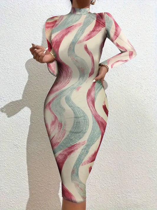 Black Mockneck Shoulder Pads Long Sleeve Dress